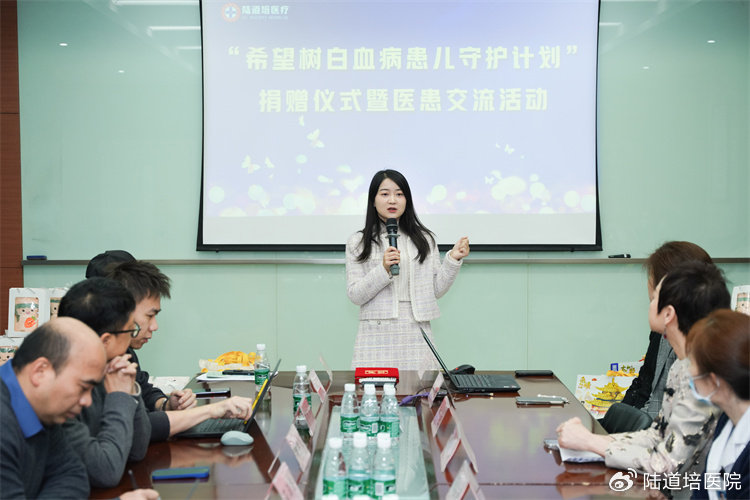 2024年2月2日上午,“希望樹白血病患兒守護計劃”捐贈儀式在河北燕達陸道培醫(yī)院一層會議室召開。陸道培醫(yī)院醫(yī)療執(zhí)行院長陸佩華、血液科張弦主任、楊君芳主任,廣州市紅棉腫瘤和罕見病公益基金會(以下簡稱“紅棉公益基金會”)副理事長&淋巴瘤之家創(chuàng)始人顧洪飛、副秘書長葉云,愛心企業(yè)上海時宜品牌管理有限公司市場部總監(jiān)高承博、外事部負責人陳訓龍,暖白小屋代表等出席捐贈儀式。