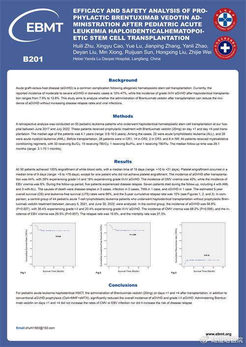 題目:Efficacy and Safety Analysis of Prophylactic Brentuximab Vedotin Administration after Pediatric Acute Leukemia Haploidentical Hematopoietic Stem Cell Transplantation