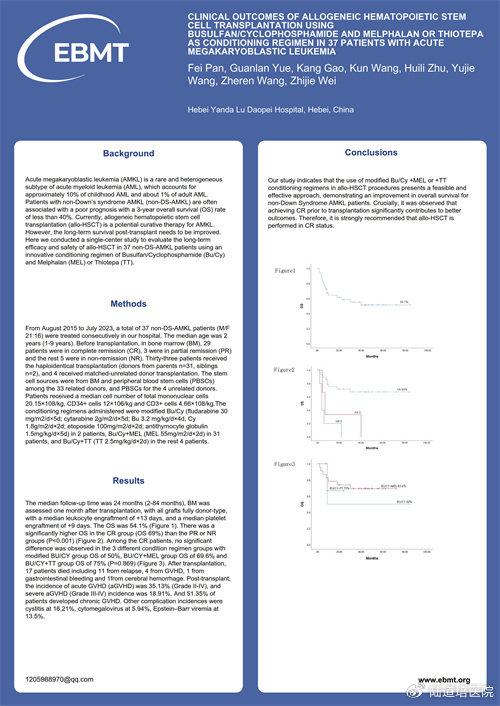 題目: Clinical Outcomes of Allogeneic Hematopoietic Stem Cell Transplantation Using Busulfan/Cyclophosphamide and Melphalan or Thiotepa as Conditioning Regimen in 37 Patients with Acute Megakaryoblastic Leukemia