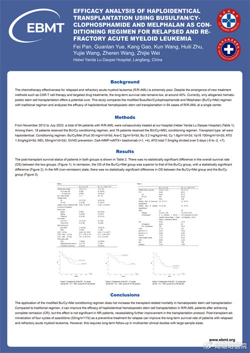 題目:Efficacy Analysis of Haploidentical Transplantation Using Busulfan/Cyclophosphamide and Melphalan as Conditioning Regimen for Relapsed and Refractory Acute Myeloid Leukemia