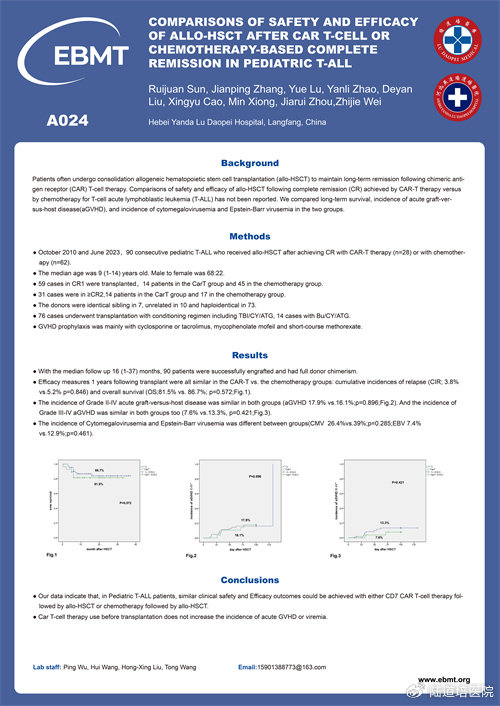 題目:Comparisons of Safety and Efficacy of Allo-HSCT after CAR T-Cell or Chemotherapy-Based Complete Remission in Pediatric T-ALL
