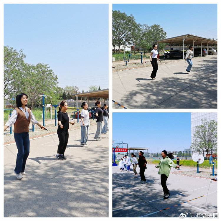 2025 年 4 月 25 日,北京陸道培醫(yī)院(亦莊院區(qū))春季運動會在院內(nèi)籃球場順利舉行。本屆運動會共設(shè)單搖跳繩、雙人跳繩、摸石過河、七人八足、拔河等五個項目,吸引了來自全院臨床、醫(yī)技、行政、后勤的七支代表隊,90 余人踴躍參與。